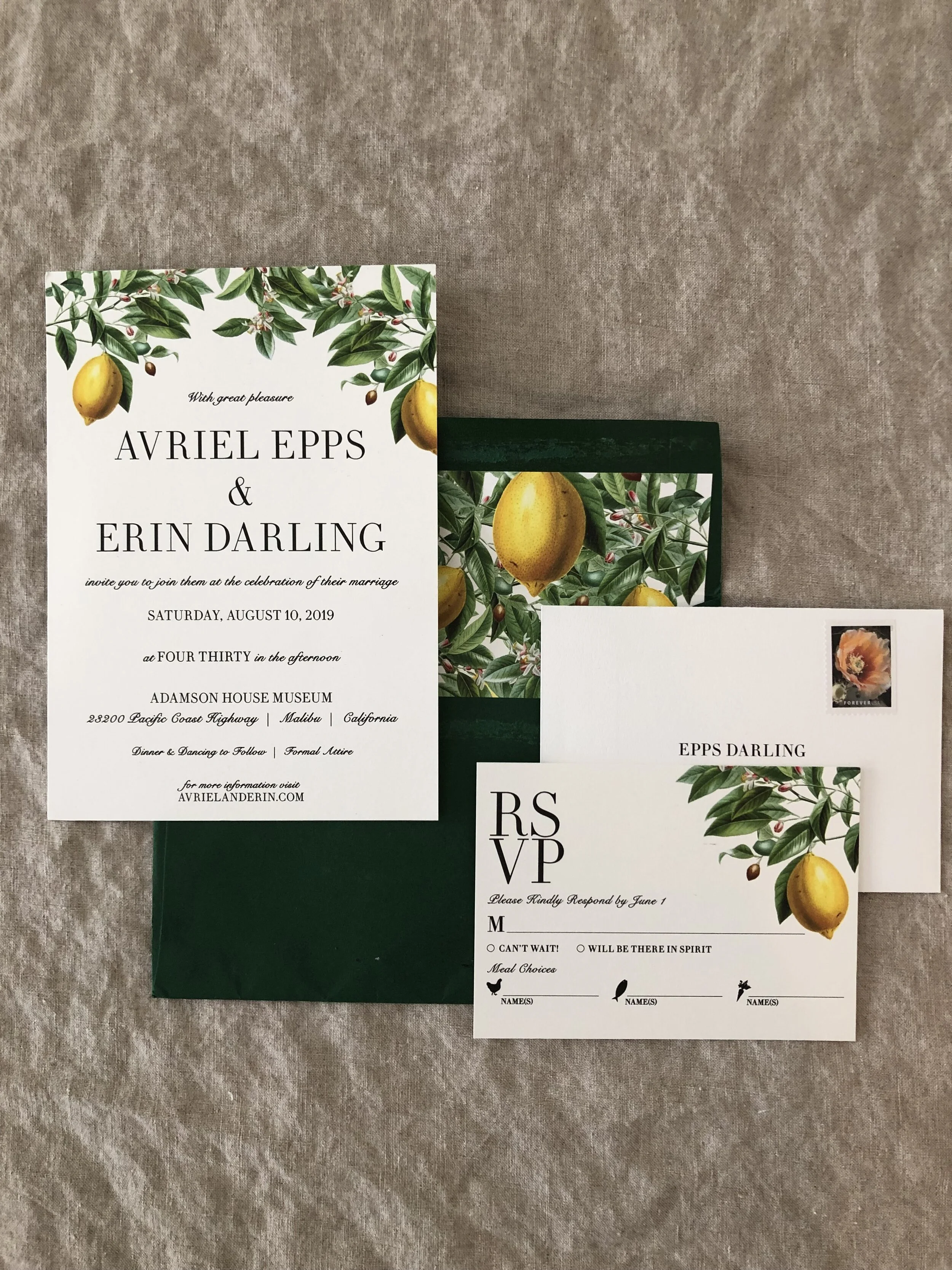 Wedding invitations and wedding paper collateral.